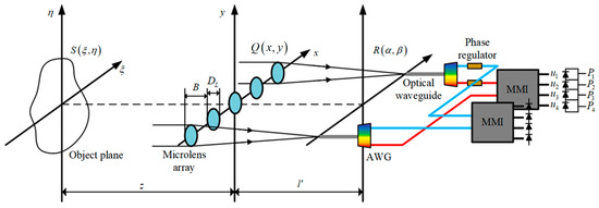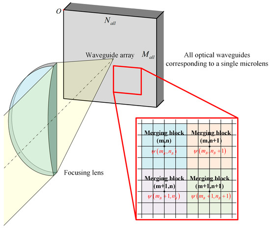 Due to the end-coupling, the propagation of the light field from the microlens array to the waveguide array can be regarded as a Fresnel diffraction process. Based on Equation (3), the optical field distribution at the optical waveguide array can be written as follows: