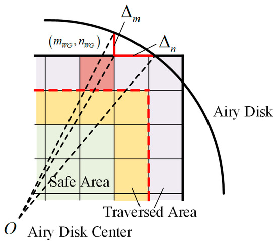 Figure 4, a microlens satisfying the optical waveguide coupling condition focuses light at infinity onto the optical waveguide array. The optical waveguide array consists of square optical waveguide elements in an orthogonal arrangement. Each optical waveguide element interferes with another optical waveguide element paired with the baseline. The four-way interference signals are detected by the avalanche photodiode and stored in the signal processing module for subsequent signal processing operations. The focused spot can be regarded as an Airy disk close to the diffraction limit, and the Airy disk radius can be calculated by the following formula [