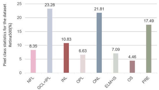 The average percentage of pixels in each retinal layer in the Retina500 dataset among all retinal layers (excluding background).