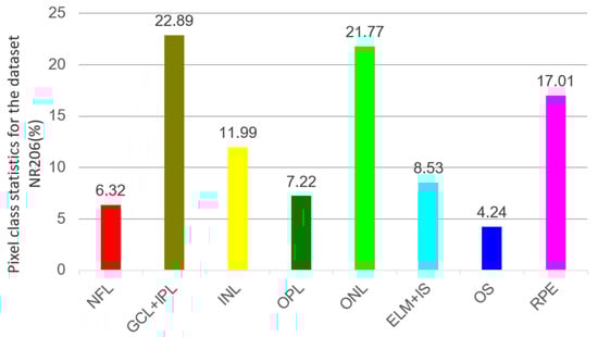 The average percentage of pixels in each retinal layer in the NR206 dataset among all retinal layers (excluding background).