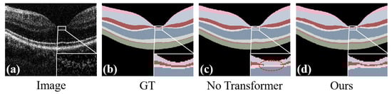 Comparison of quantitative analysis on the Retina500 dataset through Transformer ablation experiments performed in our framework.