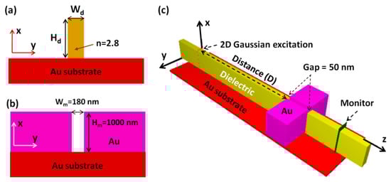 - Tian, J.; Yu, S.; Yan, W.; Qiu, M. Broadband high-efficiency surface-plasmon-polariton coupler with silicon-metal interface. Appl. Phys. Lett. 2009, 95, 013504. [Google Scholar] [CrossRef]