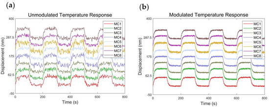 To further validate the effectiveness of the high–frequency modulation technique, tests were conducted in real–world measurement scenarios. Temperature variations were measured using a microcantilever beam system, and the results were compared with the previous data obtained by the research group using direct switching methods.