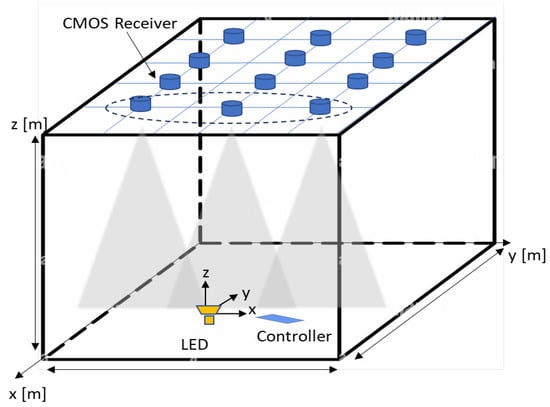 Moreover, to the author’s knowledge, only two related works explore the utilization of MCS for Visible Light Positioning as presented by Jiaqi et al. [18,19]. In their initial work [18], the authors present a VLP system based on dual cameras. In the most recent work [19], the arrangement is expanded to three cameras. While attaining an exceptional accuracy of 0.17 cm, this achievement depends on the use of costly cameras with a resolution of 4000 × 3036 pixels. The experimental setup covers an area of 1 × 1 m, and the cameras tilted towards the center of the target enhance the accuracy but limit coverage area, which does not reflect practical applications. Finally, the authors have explored 3D positioning but have not included accuracy tests at various heights, which could be valuable for comprehensive evaluation.
