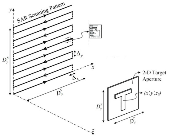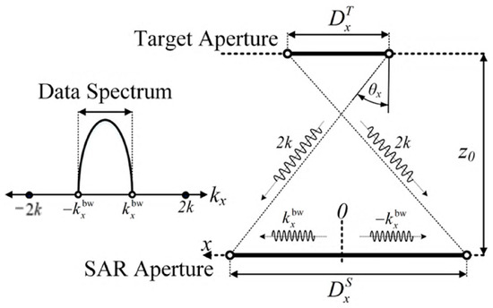 As shown in Figure 2, DSx and DTx are the dimensions of the synthetic aperture and the target aperture. Taking into account the size of the synthetic aperture and the target aperture, the echo signal spectrum along the X-axis will be limited to the range [−kbwx, kbwx], where kbwx is the highest wave number component: