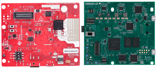 This section uses TI’s IWR1843 millimeter wave radar chip integration board, a hardware integration board that operates in the 76–81 GHz band. As shown in Figure 4, the integrated chip is equipped with three transmitting antennas and four receiving antennas, demonstrating excellent anti-interference capability. The main control task is carried out by the ARM-Cortex and the C674x-DSP, which have a RAM capacity of 1526 KB.
