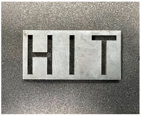 In the second imaging experiment, the experimental target size is 100 mm × 150 mm. In order to effectively account for the distortion of the reconstructed image caused by aliasing, the target distance z0 = 275 mm, and the horizontal resolution is about 1.6 mm. The spatial sampling interval ∆x = 0.6 mm and ∆y = 8 mm. The sheet metal target is shown in Figure 11.
