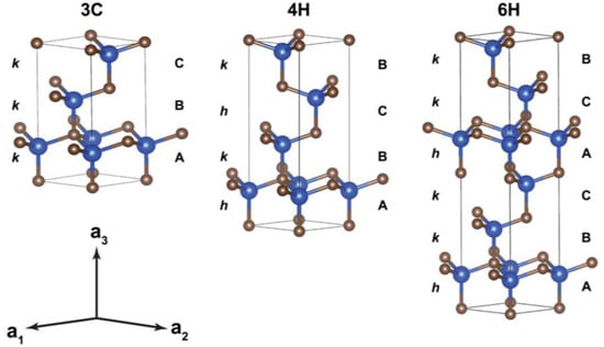 - Kuroiwa, Y.; Matsushita, Y.; Oba, F. Unraveling Crystal Symmetry and Strain Effects on Electronic Band Structures of SiC Polytypes. AIP Adv. 2020, 10, 105014. [Google Scholar] [CrossRef]