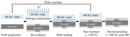 - Joly, J.-P.; Aspar, B.; Bruel, M.; Di Cioccio, L.; Letertre, F.; Hugonnard-Bruyère, E. New SiC on Insulator Wafers Based on the Smart-Cut® Approach and Their Potential Applications. In Progress in SOI Structures and Devices Operating at Extreme Conditions; Balestra, F., Nazarov, A., Lysenko, V.S., Eds.; Springer: Dordrecht, The Netherlands, 2002; pp. 31–38. ISBN 978-94-010-0339-1. [Google Scholar]