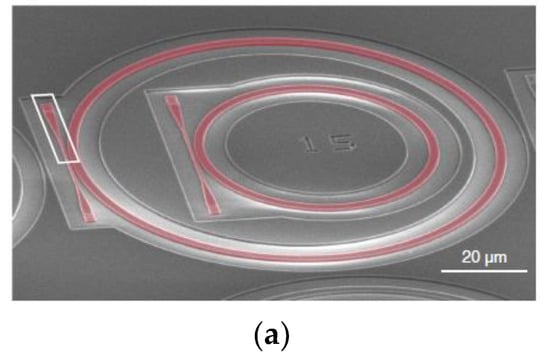 - Errando-Herranz, C.; Niklaus, F.; Stemme, G.; Gylfason, K.B. Low-power microelectromechanically tunable silicon photonic ring resonator add-drop filter. Opt. Lett. 2015, 40, 3556–3559. [Google Scholar] [CrossRef]