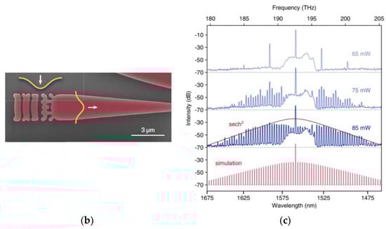 - Liu, X.; Gong, Z.; Bruch, A.W.; Surya, J.B.; Lu, J.; Tang, H.X. Aluminum nitride nanophotonics for beyond-octave soliton microcomb generation and self-referencing. Nat. Commun. 2021, 12, 5428. [Google Scholar] [CrossRef] [PubMed]