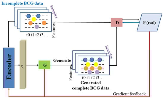 In practice, it is common that sensor failure or body turnover of the subject makes the collection of vital sign signals incomplete and causes the loss of some key values. There are two main problems with the current methods of time series data missing value imputation. On the one hand, most data-imputation methods ignore the particularity of time series. On the other hand, a complete dataset is required by the time series data imputation method based on a recurrent neural network. In this paper, the VS-E2E-GAN model is proposed which can directly interpolate missing time series data. The model relies on a bidirectional gated recurrent neural network to model the time series and fully learn the implicit information contained in the remaining data. Vital signs data are usually collected continuously by sensors and show significant temporality, while the time series collected by the sensor can be lost due to the failure or interference of the sensor. Therefore, it is necessary to prevent the missing part from affecting the subsequent data analysis by processing the missing time series. Based on the observed characteristics of missing time series data, the idea of auto-encoder is introduced to propose a filled recurrent neural network model that can be applied to process time series data. However, the model requires complete time series data during training, so that it is used as a generator network to construct a GAN-based time series missing value imputation model called VS-E2E-GAN. The model starts by learning the distribution law of time series on the missing dataset. After the completion of network training, the new time series data conforming to the original data distribution are generated. Also, the network-generated time series data are used to impute missing values. The overall model structure is shown in Figure 3.