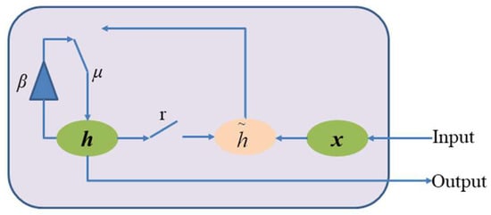 To ensure β ∈ (0, 1], a negative exponential function is used as a constraint. Meanwhile, Wβ is introduced as a full-weight matrix for the interaction of the δ matrix. After the attenuation vector is obtained, the attenuation vector β is multiplied by elements to update the hidden state of the GRU. Since data preprocessing is often conducted through the normalization method, the hidden state is updated in this study by multiplying it with the attenuation vector. Therefore, the value of the updated hidden state is not overly small. The formula used for GRUI is expressed as follows: