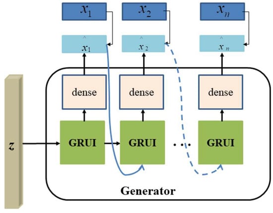 In an era of artificial intelligence, the technology of deep learning is being applied widely to achieve data processing and pattern recognition. Generative adversarial network (GAN) is a generative learning algorithm that has emerged in recent years [25,26,27]. Due to the advantage of GAN in model-free reconstruction to perform data generation tasks, it has been applied to deal with time series data generation. By following the adversarial training process, the quality of samples generated via GAN is significantly improved compared with traditional methods [28,29,30,31,32]. Moreover, the framework of GAN shows flexibility. The generator or discriminator can be any differentiable function, which is conducive to the further application of GAN. At present, recurrent neural networks (RNNs) are being used widely for sequence learning, with excellent achievement in digital image signal processing, video signal processing, and natural language processing (NLP) [33,34,35,36,37,38,39]. Some representative modules, such as gated recurrent unit (GRU) and long short-term memory (LSTM), are applicable to alleviate the problem of gradient disappearance caused by introducing gating units and applying information-locking strategies. Alternatively, extra modules can be used to solve problems in LSTM [40,41].
