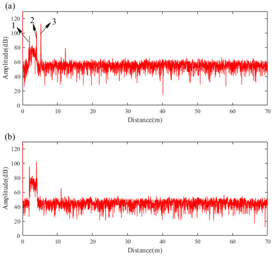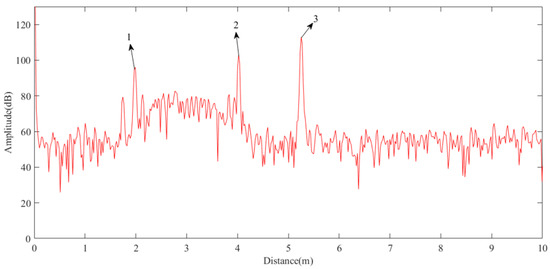 Figure 1a,b, a frequency-monotonic interval (f1, f2) is selected from the original frequency-modulated signal, along with the ranging interference signal corresponding to the time interval (t1, t2) is selected. After dividing the frequency interval (f1, f2) equally, the piecewise cubic hermite interpolating polynomial (PCHIP) interpolation method is used to insert discrete points on the coordinate axis of this evenly spaced frequency interval. These discrete points represent data extracted from