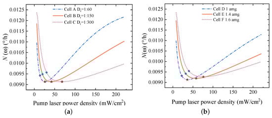 Substituting Equation (2) into Equation (20) and differentiating with respect to , we obtain that when , the scale factor reaches its maximum value. The corresponding pump laser power density at this point is denoted as .