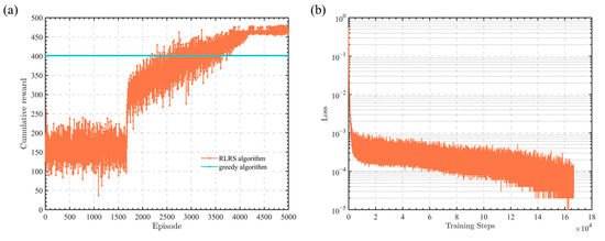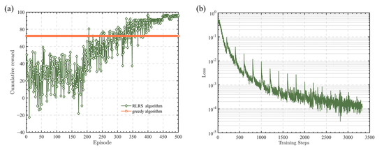 In this section, the performance simulation of the RLRS algorithm is presented, and the simulation parameters are shown in Table 1. As a comparison, a greedy algorithm is utilized as a reference to demonstrate the advantages and effectiveness of the proposed RLRS algorithm.