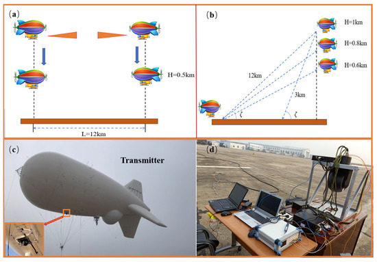 (a) Schematic of atmospheric turbulence refractive index structure constant measurements. (b) Schematic of scintillation index and fiber coupling efficiency measurements (c) Airship-mounted laser communication system. (d) Ground station receiver.