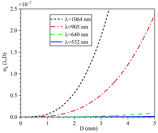Figure 6 shows the distribution of the absorption cross-sections of snow particles corresponding to different wavelengths. As can be seen from the figure, the absorption of the blue-green wavelength laser by snow particles is significantly lower than that of the near-infrared wavelength.