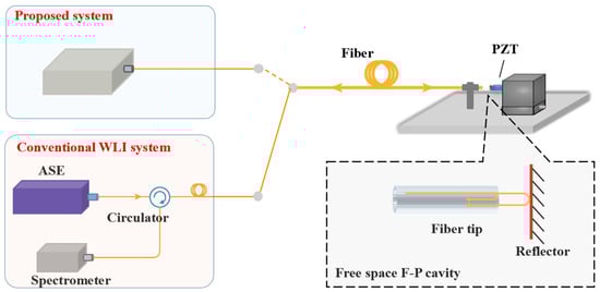 Schematic diagram of the proposed system and conventional WLI system for vibration measurement.