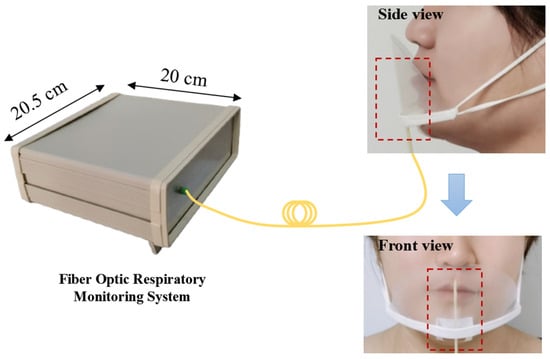 Compact fiber-optic respiratory monitoring system. The red rectangle marks the fiber tip sensor.