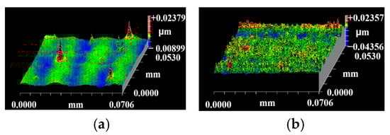 When the SnO2 films have been prepared, the surface morphology of the films is studied using the 3D profilometer (Zygo). Figure 5a,b show the Zygo results of two samples. The surface roughness Sa for nine areas of the films is measured using Zygo. The average values of surface roughness Sa of the SL-SnO2 and the FQ-SnO2 are 2.06 nm and 1.03 nm, respectively, which indicates that films have an extremely smooth surface. Based on that, the roughness of the SnO2 film may be neglected in ellipsometry fitting processing.
