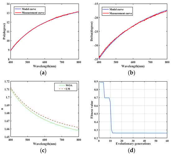 The structure of this paper is as follows. Section 2 introduces the measurement and fitting principle of spectroscopic ellipsometry. In Section 3, a data-fitting method based on the WOA is proposed to determine the thickness and refractive index of films. In Section 4, the main results are derived from the proposed fitting method. Conclusions and future directions are presented in Section 5.