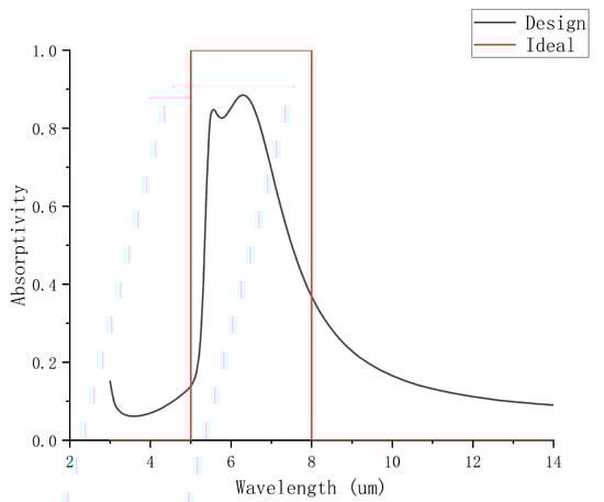 Absorption spectra of design and ideal results.