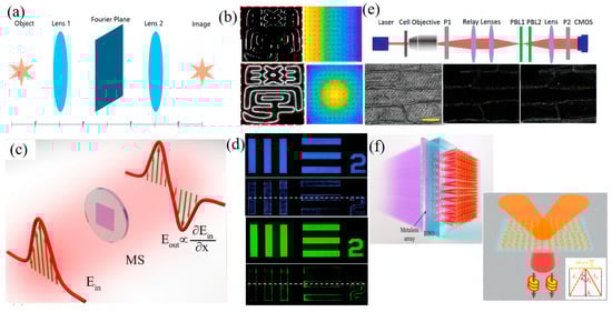 - Cotrufo, M.; Singh, S.; Arora, A.; Majewski, A.; Alù, A. Polarization imaging and edge detection with image-processing metasurfaces. Optica 2023, 10, 1331–1338. [Google Scholar] [CrossRef]