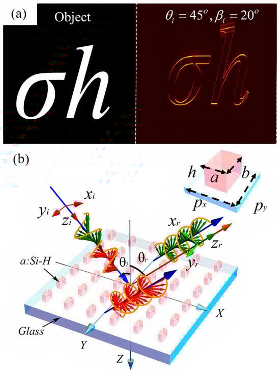 (a) is the simulated image of edge detection under the incidence angles θi and βi; (b) is the amplitude and phase values.