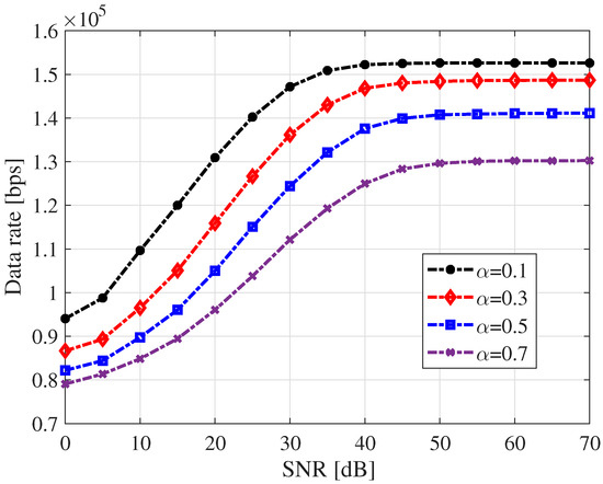 Next, we computed the ADR of the system, which represents the effective throughput of useful information. Mathematically, it can be related to the maximum theoretical data rate and SER as follows: