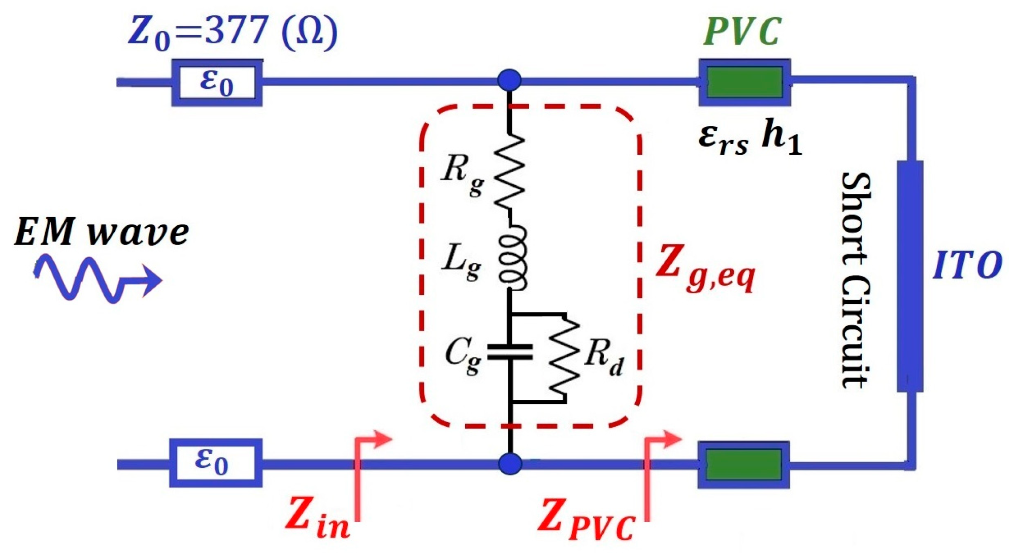 In the ECM, the PVC grounded substrate (spacer) can be modeled as a short-circuited transmission line because the ITO ground plane acts as a PEC. The impedance of the PVC spacer is given by