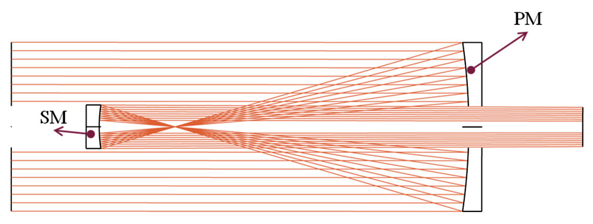 In this paper, the off-axis two-mirror afocal optical structure (OTAOS) is used to replace the traditional refractive telescope structure. The OTAOS mainly consists of the Kepler telescope construction with an intermediate image plane and the Galileo telescope structure without an intermediate image plane, as shown in Figure 2.