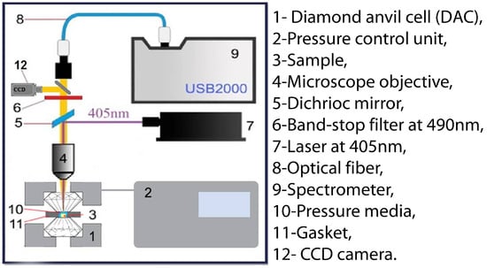 While the experimental setup for luminescence measurements as a function of temperature and pressure is described in [37], we will now focus specifically on the setup used for high-pressure measurements.