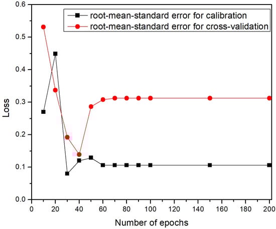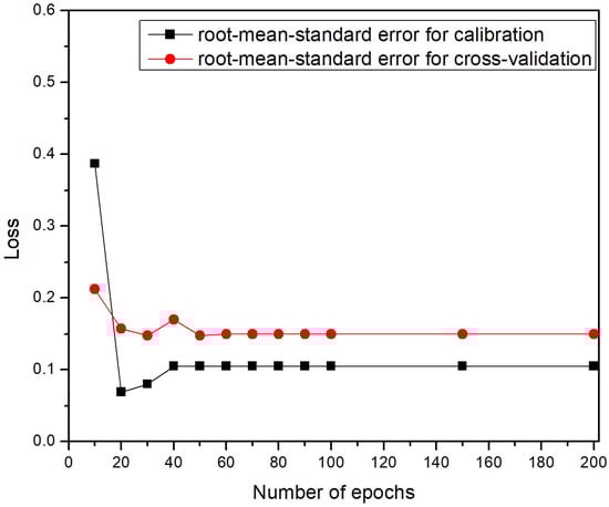 We used a Venetian blind cross-validation method [40] with a 10-fold split, meaning 90% of the data was used for training and 10% for validation in each sub-validation experiment. The data structure is shown in Figure 5. After augmentation [41], each pressure value is represented by 10 spectra, resulting in a total of 130 spectra. Each test set was determined by selecting every tenth spectrum from the dataset, starting with spectrum number 1 and continuing through all spectra. In practice, 10% of the data (corresponding to the same pressure) (corresponding to one spectrum per pressure, i.e., 13 spectra) was treated as unknown, while the remaining 90% was used for training. In each of the 10 sub-validation experiments, a different 10% of the data was set aside as unknown to the computer. This is a standard feature of the SOLO machine learning software, designed for situations of this kind. After further testing, we selected a batch size of 10, a value different from the default setting in the Solo software (Version 9.1).