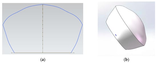 (a) The 2-D contour line of the composite freeform surface, (b) the entity model of the lens.