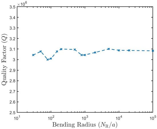 Influence of bending radius on quality factor Q of the bending NPCs.
