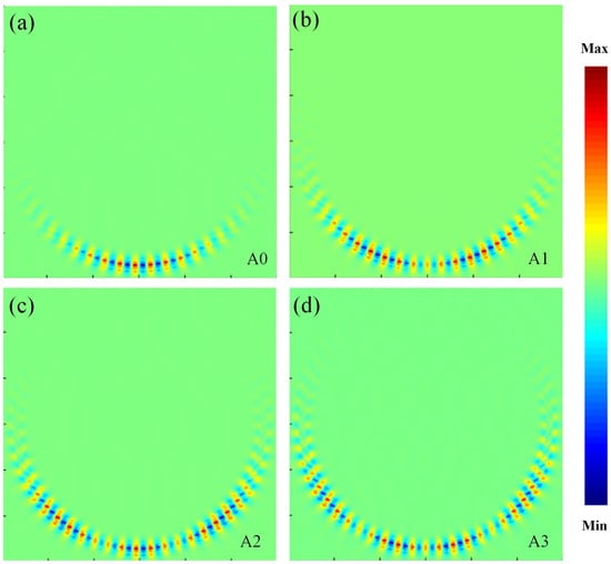 Mode profiles of the (a) A0, (b) A1, (c) A2 and (d) A3 order air modes of the unloaded PCCoBW ( = 50).