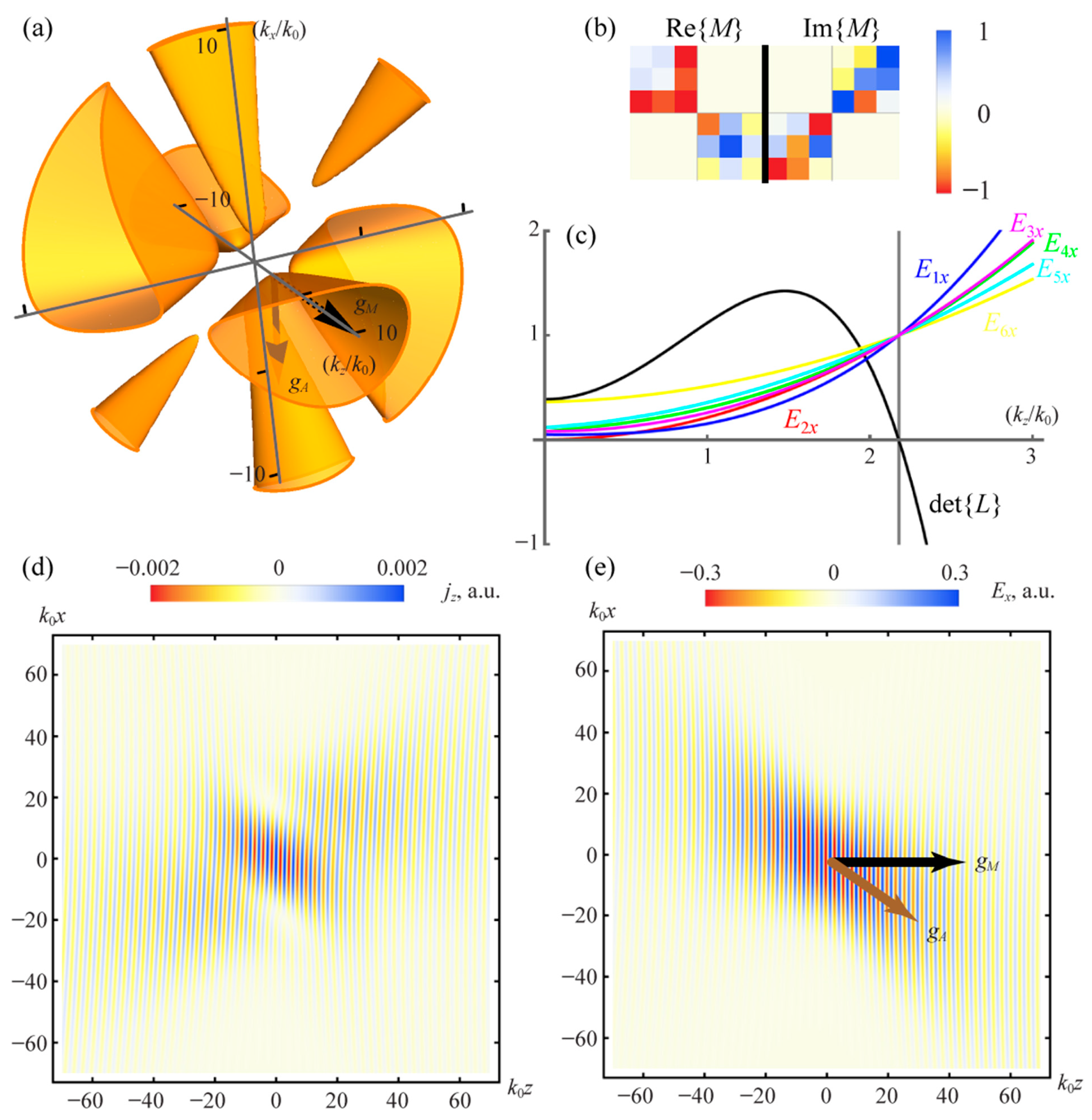 Figure 2b. These plots are produced by numerically evaluating our analytical expressions for the chosen 6 × 6 effective material, confirming that the results presented here are fully quantitative.