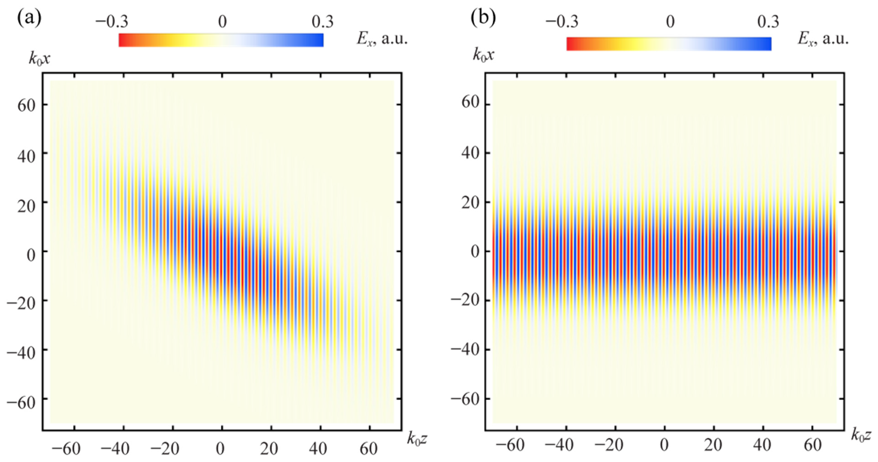 Figure 2a. These sources are small in magnitude and arise from the deviation of the paraxial approximation from the exact solution of Maxwell’s equation given by Equation (5). The associated