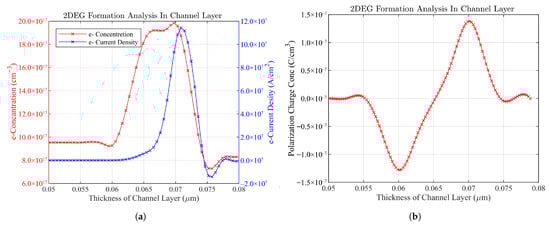 Figure 4 illustrate a highly localized 2DEG at the GaN/InN heterointerface, as confirmed by sharp peaks in carrier concentration and current density. These effects are governed by polarization-induced charge discontinuities, as shown in