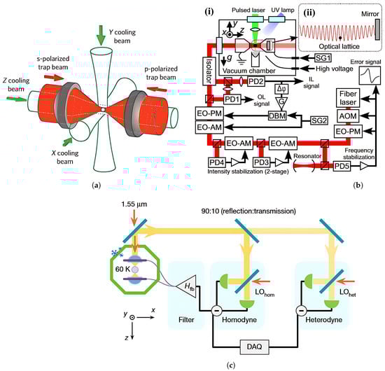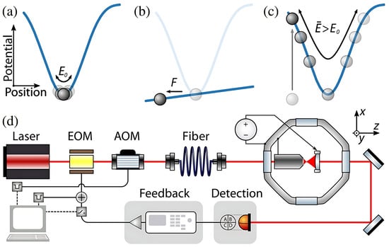 - Ashkin, A.; Dziedzic, J.M. Feedback stabilization of optically levitated particles. Appl. Phys. Lett. 1977, 30, 202–204. [Google Scholar] [CrossRef]