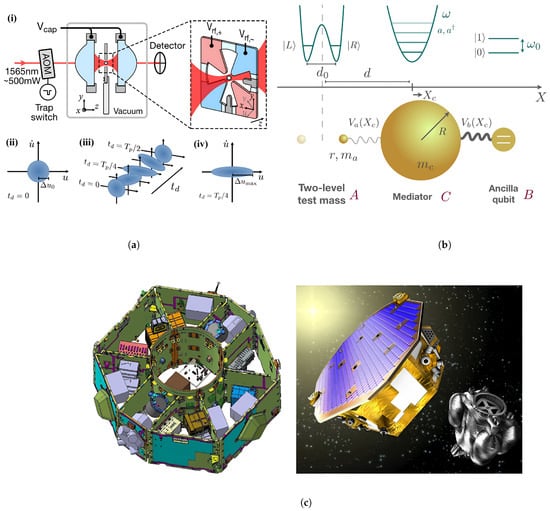 - Romero-Isart, O.; Pflanzer, A.C.; Blaser, F.; Kaltenbaek, R.; Kiesel, N.; Aspelmeyer, M.; Cirac, J.I. Large Quantum Superpositions and Interference of Massive Nanometer-Sized Objects. Phy. Rev. Lett. 2011, 107, 020405. [Google Scholar] [CrossRef]