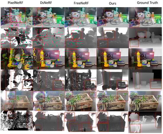 - Roessle, B.; Barron, J.T.; Mildenhall, B.; Srinivasan, P.P.; Nießner, M. Dense depth priors for neural radiance fields from sparse input views. In Proceedings of the IEEE/CVF Conference on Computer Vision and Pattern Recognition, New Orleans, LA, USA, 18–24 June 2022; pp. 12892–12901. [Google Scholar]
