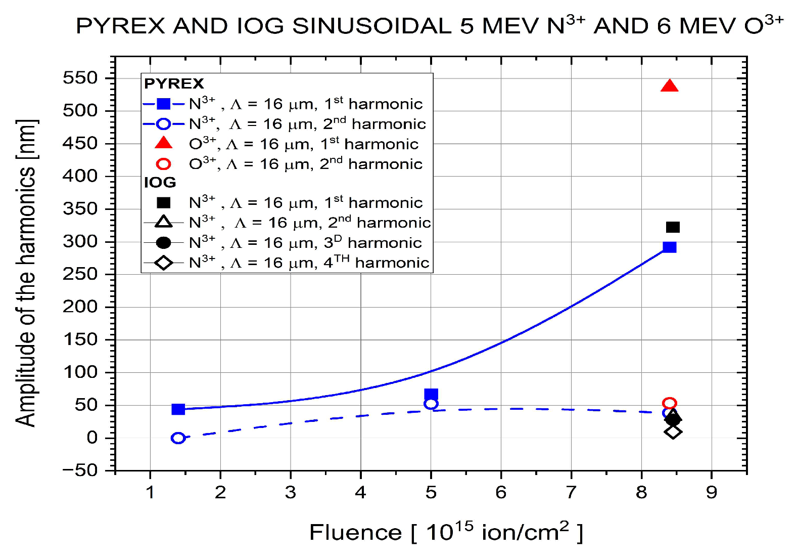 GG | IOG glass | N3+ | 5 | 2.5 × 30 | 1.73 | 8.45 × 1015 | 16 |