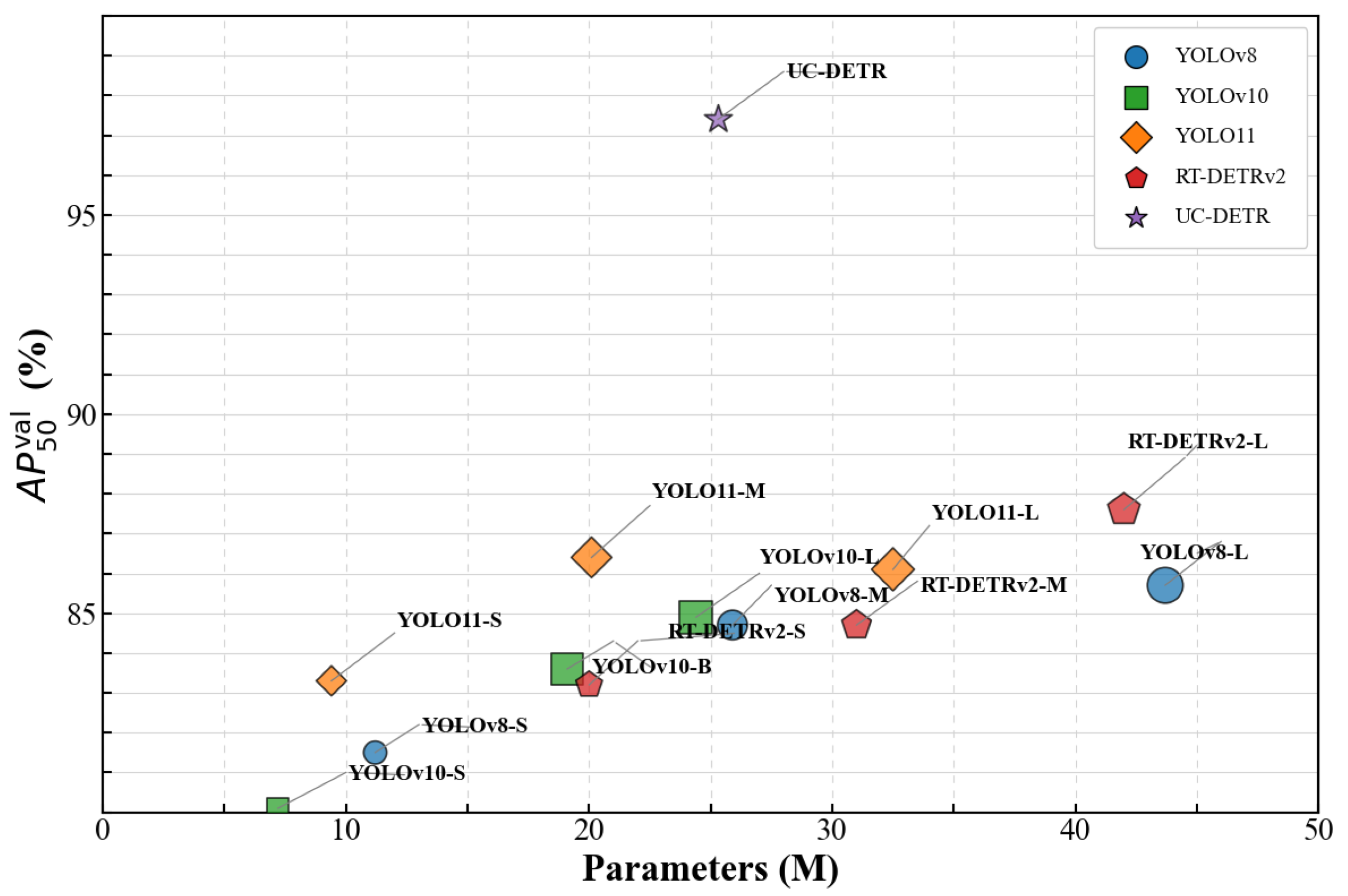 UC-DETR | 25.3 M | 72.7 | 4.98 ms | 81.1 | 97.4 |