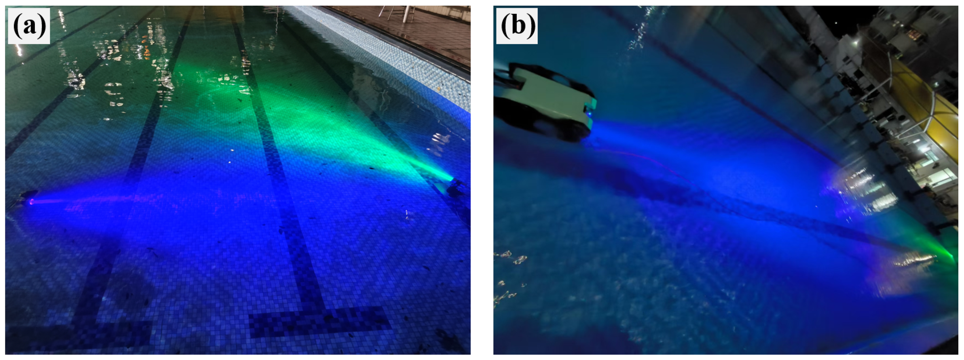 - Jia, B.; Ge, W.; Cheng, J.; Du, Z.; Wang, R.; Song, G.; Zhang, Y.; Cai, C.; Qin, S.; Xu, J. Deep Learning–Based Cascaded Light Source Detection for Link Alignment in Underwater Wireless Optical Communication. IEEE Photonics J. 2024, 16, 7801512. [Google Scholar]