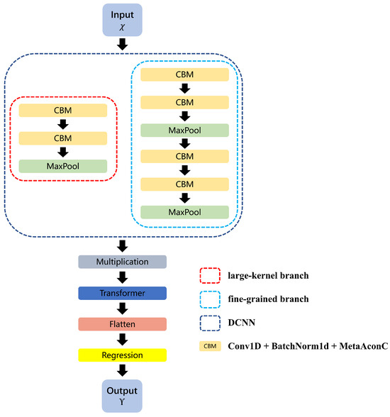 In the large-kernel branch, the first layer applies a one-dimensional convolution (Conv1d) with a kernel size of and a stride of 2 for downsampling, aiming to capture global pulse trends over a wide temporal window. This is followed by one-dimensional batch normalization (BatchNorm1d) and a learnable activation function (MetaAconC). A subsequent Conv1d layer with a kernel size of and a stride of 2 is then used to extract mid-scale features. To mitigate overfitting, a dropout layer (Dropout, ) is introduced, followed by a one-dimensional max pooling layer (MaxPool1d) that further aggregates the extracted features to yield the final output of this branch.