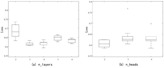 Figure 4a illustrates the effect of Transformer layer depth on model performance. Here, the number of layers denotes the count of stacked Transformer modules, each comprising (1) a self-attention mechanism that computes dependencies among positions in the input sequence to produce weighted feature representations, and (2) a feedforward neural network that applies nonlinear transformations to the self-attention outputs. Each additional layer learns progressively more abstract representations of the input data. Consequently, the choice of layer depth directly impacts model capacity and performance.