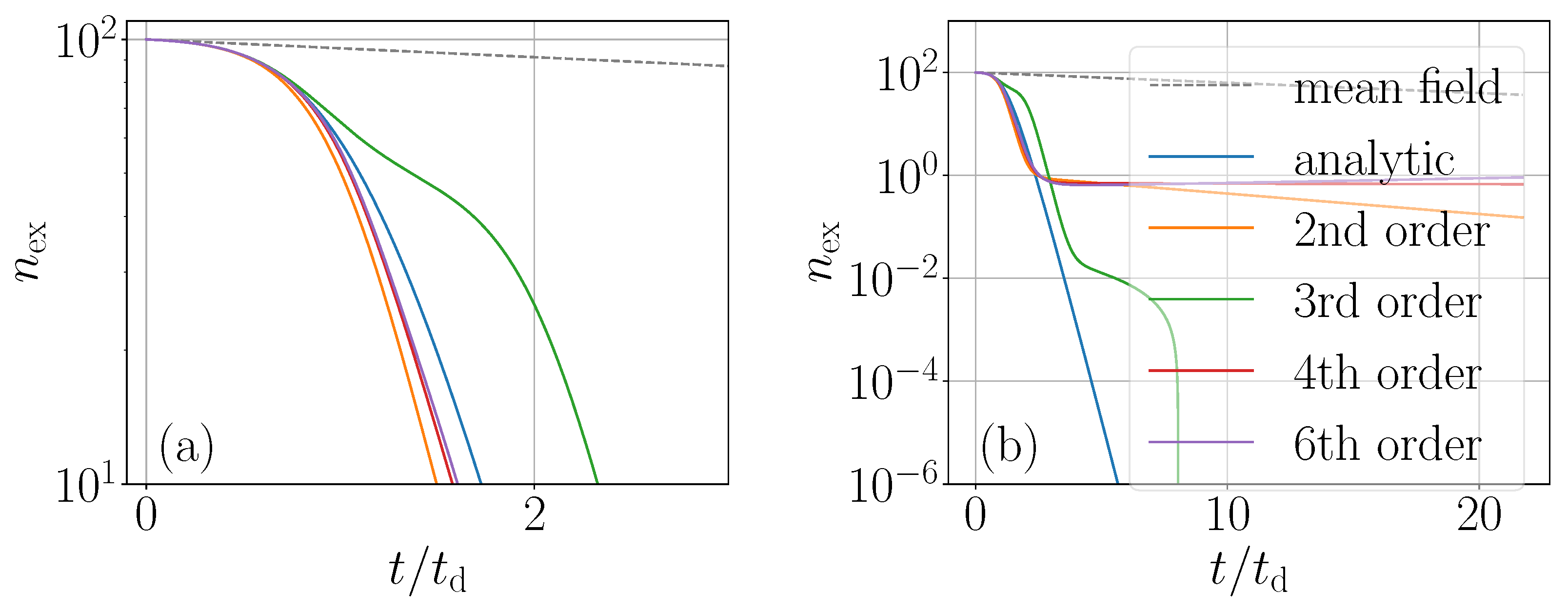 of the atoms have decayed, comparing different expansion orders. Note that